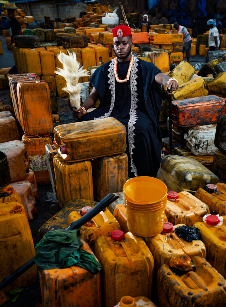 The Oil King examines power, privilege, and the illusion of wealth in contemporary Nigeria. Using palm oil as its central symbol, the work reimagines luxury through the stain of exploitation — a gloss that both seduces and exposes.